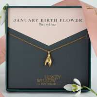 January Birth Flower Necklace - Snowdrop - Gold Vermeil 20 inches + 2 inch extender