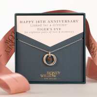18th Anniversary Gift - Double Link Tiger's Eye Necklace - Silver & Gold sterling silver / 16 inches + 2 inch extender