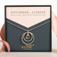 November Birthstone Double Halo Necklace - Citrine - Silver & Gold silver / 16 inches + 2 inch extender