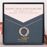 50th Anniversary Necklace - The Original 5 Links for 5 Decades - Silver & Gold 14k gold-fill / 20 inches + magnetic clasp