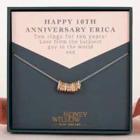 10th Anniversary Necklace - 10 Rings for 10 Years - Tiny Links - Silver & Gold & Rose Gold 14k gold-fill / 18 inches + 2 inch extender