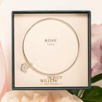 Personalised Rose Flower Bangle - Love - Silver
