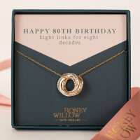 80th Birthday Necklace - The Original 8 Links for 8 Decades - Petite Silver & Gold 14k gold-fill / 20 inches + magnetic clasp