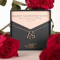 Valentines Gift - Double Initial Letter Necklace - Silver 20 inches + 2 inch extender