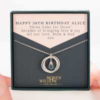 30th Birthday Birthstone Necklace - The Original 3 Links for 3 Decades Necklace - Silver 16 inches + 2 inch extender