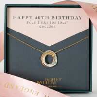 Personalised 40th Birthday Birthstone Necklace - The Original 4 Links for 4 Decades Necklace - Petite Silver & Gold 14k gold-fill / 20 inches + 2 inch extender