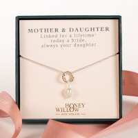 Gift for Mother of the Bride - Love Knot Pearl Necklace - Silver & 9kt Gold sterling silver / 16 inches