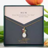 Family Birthstone Necklace with Freshwater Pearl - Silver & Gold 14k gold-fill / 20 inches + 2 inch extender