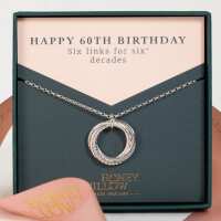 60th Birthday Necklace - The Original 6 Links for 6 Decades - Silver 20 inches + 2 inch extender