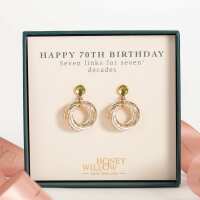 70th Birthday Birthstone Earrings - The Original 7 Links for 7 Decades - Petite Silver & Gold 14k gold-fill
