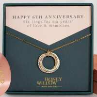 6th Anniversary Necklace - The Original 6 Rings for 6 Years Necklace - Silver & Gold 14k gold-fill / 20 inches + 2 inch extender