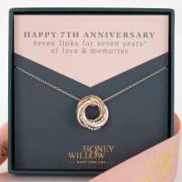 Personalised 7th Anniversary Necklace - Hand-Stamped - The Original 7 Rings for 7 Years Necklace - Petite Silver & Gold sterling silver / 16 inches + 2 inch extender