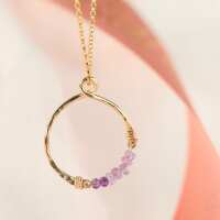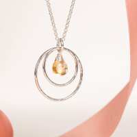 Birthstone Double Halo Necklace - Forever Encircled With Love - Silver & Gold silver / 20 inches + 2 inch extender