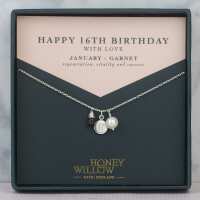 Personalised 16th Birthday Birthstone Necklace 16 inches + 2 inch extender