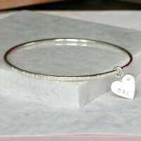Personalised Remembrance Bracelet With Diamond Heart Charm Medium - 2.5 inches