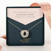Personalised Family Names & Birthstones Necklace - 5 Birthstones for 5 Loved Ones - Petite Silver 16 inches + 2 inch extender