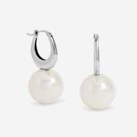 Jon Richard Jon Richard Rhodium Plated Polished and Pearl Hoop Earrings