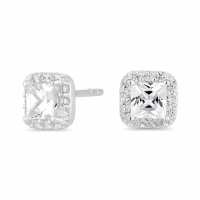 Simply Silver Sterling Silver 925 Cubic Zirconia Square Halo Stud Earring