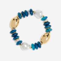 MOOD Mood Gold Blue Bead Statement Stretch Bracelet