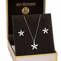 Jon Richard Silver Cubic Zirconia Flower Set - Gift Boxed