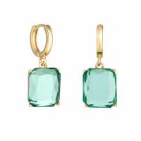 MOOD Mood Gold Green Emerald Cut Open Stone Huggie Hoop Earrings