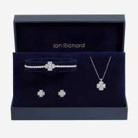 Jon Richard Jon Richard Silver Plated and Pave Clover Trio Set - Gift Box