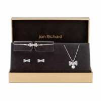 Jon Richard Jon Richard Silver Plated Crystal Bow and Pearl Set - Gift Boxed