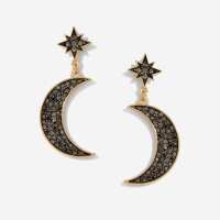 MOOD Mood Gold Black Star And Moon Drop Earrings