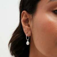 Simply Silver Simply Silver Recycled Sterling Silver 925 Ribbed Hoop Pearl Drop Earrings
