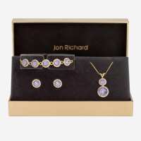 Jon Richard Jon Richard Gold Plated Crystal And Lavender Halo Double Solitaire Trio Set - Gift Boxed