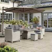 Palma Signature Lounge Sofa Set White Wash with Grey Taupe Cushion - High/Low Glass Top Table
