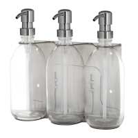 Nickel Triple Wall Mounted Soap Dispenser Silver / 300ml / Clear