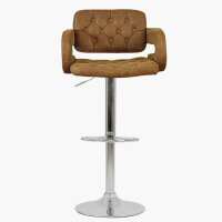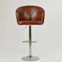 Kenton Bar Stool Vintage Tan Brown Leather & Chrome Base