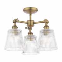 Laura Ashley Callaghan 3 Light Semi-Flush Matt Antique Brass and Ribbed Glass
