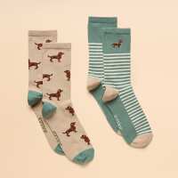 Joules Ladies Everyday 2 Pack Socks - Khaki - Size: One Size