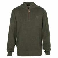 Percussion Mens Embroidered Sweater Zip Collar Green / Medium