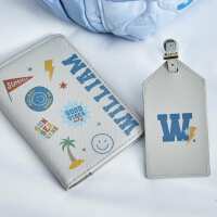 My Kids Personalised Grey Cartoon Passport Holder & Luggage Tag Set
