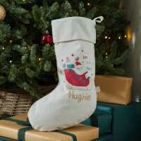 Personalised Santa Sleigh Small Cream Gift Stocking