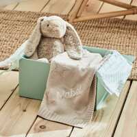 Personalised Oatmeal Blanket & Bunny Gift Set