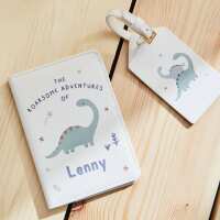 Personalised Dinosaur Baby Passport Holder & Luggage Tag Set