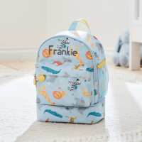 Personalised Green Dinosaur Print Mini Backpack with Compartment