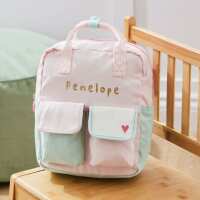 Personalised Double Pocket Colour Block Mini Backpack in Pink