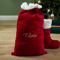 Personalised Embroidered Name Red Velvet Christmas Sack