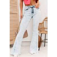 Keeping Secrets High Rise Acid Wash Flare Jeans (Light) Small