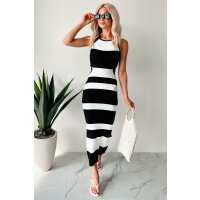 Understated Chic Halter Bodycon Midi Dress (Black/White) LARGE