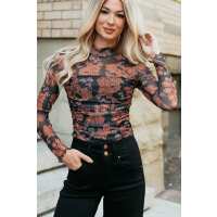 Bossy In Blush Floral Mock Neck Bodysuit (Charcoal) SMALL