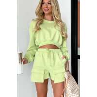 Can't Convince Me Crop Sweatshirt & Shorts Set (Lime) Small