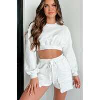 Can't Convince Me Crop Sweatshirt & Shorts Set (White Melange) Medium