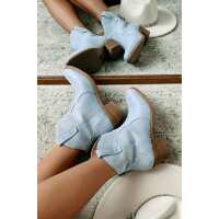 Rodeo Season Faux Suede Rhinestone Western Booties (Blue Suede) 5.5