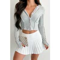 Leisure Looks Button-Up Hoodie Top (Grey) SMALL